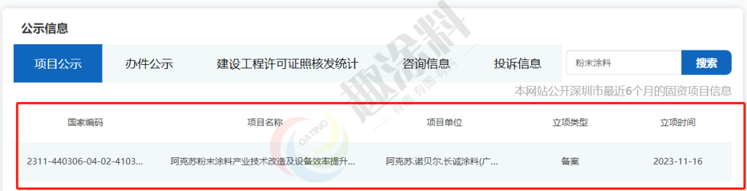 2023年11月16日,阿克蘇諾貝爾長誠涂料(廣東)有限公司,阿克蘇粉末涂料產(chǎn)業(yè)技術(shù)改造及設(shè)備效率提升二期項目,進(jìn)行企業(yè)投資項目備案。