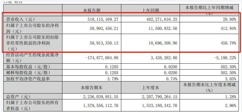 根據(jù)正丹股份剛剛披露的2024年第一季度財報顯示,公司在報告期內(nèi)實現(xiàn)營業(yè)收入高達(dá)5.18億元,較去年同期增長了28.8%。更令人矚目的是,正丹股份在報告期內(nèi)實現(xiàn)的凈利潤達(dá)到了5899.25萬元,同比增長了驚人的412.94%。