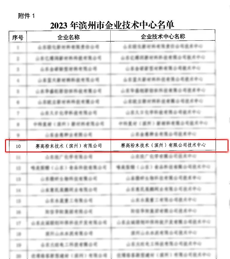 近日,山東省濱州市發(fā)展和改革委員會對外公布《關(guān)于發(fā)布2023年新認(rèn)定及全部濱州市企業(yè)技術(shù)中心名單的通知》。趣涂料(趣涂網(wǎng))注意到,經(jīng)審定,賽高粉末技術(shù)(濱州)有限公司(下稱“賽高”)被認(rèn)定為具有濱州市企業(yè)技術(shù)中心資質(zhì)。