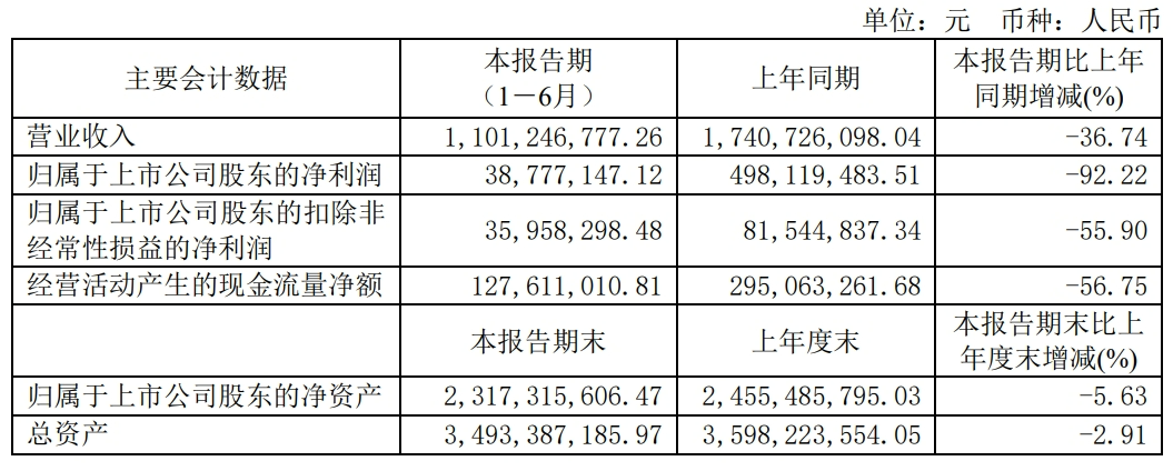 半年報顯示,今年上半年宏昌電子實現(xiàn)營業(yè)收入11.01億元,同比上年度下降36.74%,實現(xiàn)歸屬于上市公司股東的凈利潤3877.71萬元,同比上年度下降92.22%。其中環(huán)氧樹脂業(yè)務(wù)方面實現(xiàn)凈利潤2423.7萬元;覆銅板、半固化片業(yè)務(wù)方面實現(xiàn)凈利潤 1472.07萬元。