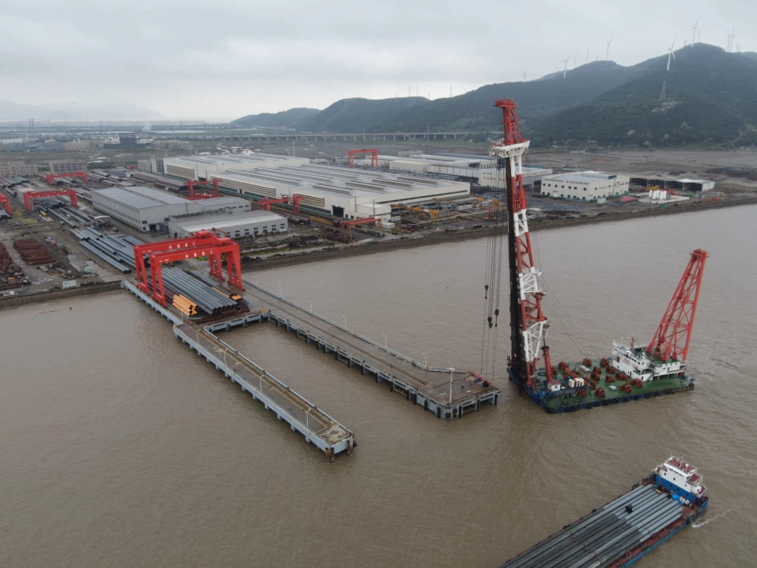 寧波舟山港主通道鋼管樁施工。