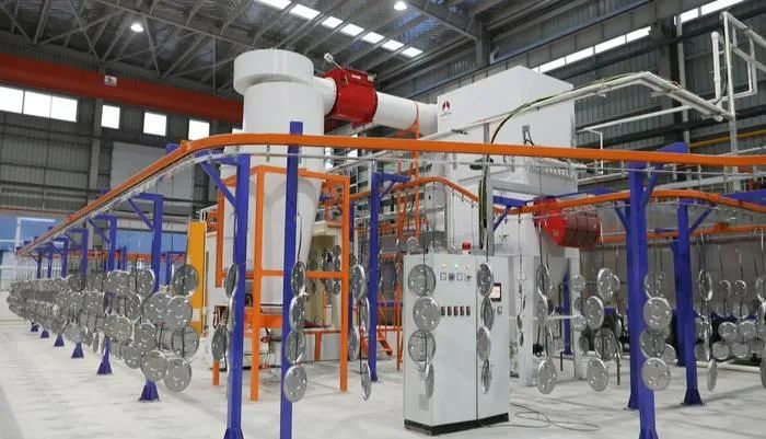 趣涂料(趣涂網(wǎng))了解到,位于濱海經(jīng)濟(jì)開發(fā)區(qū)的坤歌公司與綠島中心合作,新上了智能噴粉線等生產(chǎn)線。噴粉即噴涂粉末涂料,具有天然無VOCs排放的環(huán)保屬性,家電行業(yè)對于粉末涂料并不陌生。我們在冰箱、洗衣機(jī)、空調(diào)、吸油煙機(jī)、箱體類廚電、電視機(jī)等眾多家電產(chǎn)品上都能看到粉末涂料的身影。家電甚至是最早響應(yīng)國家環(huán)保號召,啟動“油轉(zhuǎn)粉”進(jìn)程的粉末涂料應(yīng)用領(lǐng)域。作為表面涂裝工藝,粉末涂料能夠?yàn)榧译娛褂玫慕饘倩谋砻嫣峁┉h(huán)保且性能優(yōu)異的防護(hù),更能夠?yàn)榧译姰a(chǎn)品賦予功能、美學(xué)等更多內(nèi)涵。