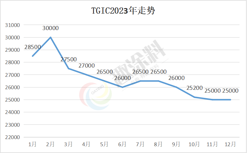 當(dāng)前TGIC行業(yè)產(chǎn)能過剩問題明顯,但實(shí)際需求不振,導(dǎo)致行業(yè)出現(xiàn)價(jià)格戰(zhàn)。2022年TGIC最高價(jià)達(dá)52000元/噸,而2023年最高價(jià)只在30000元/噸,這還是受年初疫情放開國(guó)內(nèi)商品情緒好轉(zhuǎn)疊加春節(jié)前備貨需求的影響,TGIC價(jià)格跟隨成本上漲。但年后回來需求復(fù)蘇不及預(yù)期疊加新產(chǎn)能增加,TGIC價(jià)格承壓下行。2023年TGIC最低達(dá)到25000元/噸,TGIC降價(jià)明顯。TGIC企業(yè)利潤(rùn)已經(jīng)在底部運(yùn)行,因此2024年市場(chǎng)即使延續(xù)弱勢(shì),也不會(huì)出現(xiàn)深度下行的情況。但當(dāng)前依然看不到需求好轉(zhuǎn)的趨勢(shì),TGIC行業(yè)也無法確實(shí)性轉(zhuǎn)好。