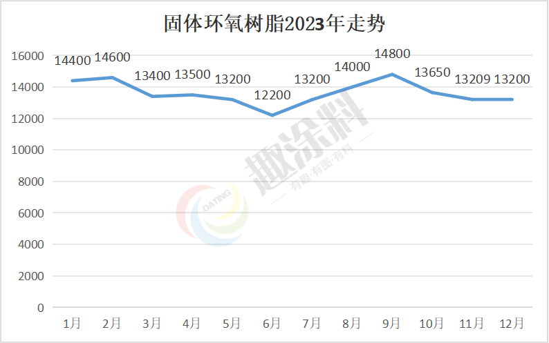 與2022年相比,2023年環(huán)氧樹脂全年波動(dòng)較小。年初為14400元/噸,年末為13200元/噸,相差1200元/噸。另外,年底最高價(jià)和最低價(jià)約相差2600元/噸,而2022年最高價(jià)和最低價(jià)約相差9000元/噸。這也從側(cè)面反應(yīng)出2023年下游采買積極性有限,僅維持剛需跟進(jìn)。