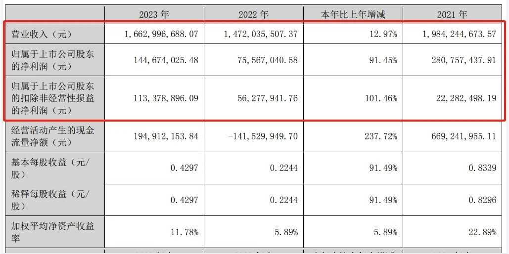 2023年,快意電梯實(shí)現(xiàn)營業(yè)收入16.63億元,同比增長12.97%;實(shí)現(xiàn)凈利潤1.45億元,同比增長91.45%;實(shí)現(xiàn)扣非后凈利潤1.13億元,同比增長101.46%。
