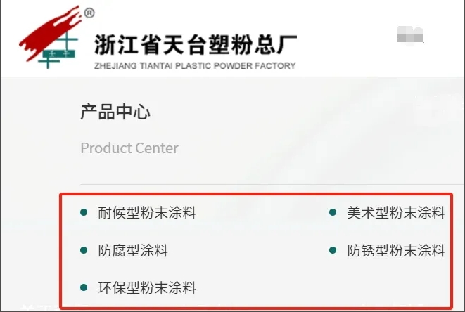 公司官網(wǎng)顯示,天臺(tái)塑粉立于1990年,是一家專業(yè)從事熱固性粉體涂料的研發(fā)、生產(chǎn)、銷售,并通過(guò)ISO9001國(guó)際質(zhì)量體系認(rèn)證和ISO14001環(huán)境體系論證的專業(yè)性工廠,年生產(chǎn)能力5000噸,產(chǎn)品有耐候型、美術(shù)型、防腐型、防銹型、環(huán)保型塑粉等。