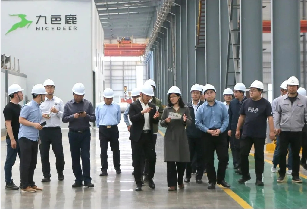 4月18日,生態(tài)環(huán)境部大氣環(huán)境司固定源處處長王鳳一行來山東九色鹿新型材料有限公司(下稱“九色鹿”)就彩鋼板產(chǎn)業(yè)集群治理工作進行調(diào)研,對九色鹿公司堅持走技術(shù)創(chuàng)新道路,推進“油轉(zhuǎn)粉”工藝,從彩鋼生產(chǎn)源頭控制污染,生產(chǎn)過程揮發(fā)性有機物(VOCs)實現(xiàn)了零排放給予高度評價。賽高粉末技術(shù)作為九色鹿彩涂板油轉(zhuǎn)粉線體、粉末涂料供應(yīng)商全程陪同。